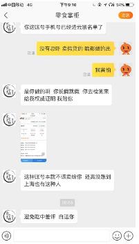 更令黃小姐惱怒的,是商家惡劣的服務態度。“請你們出具進貨單和署理證明。”在黃小姐同客服聯絡交流后,這家名為“零食掌柜”的店肆客服居然回復說:“呵呵,原來是找麻煩的,要么原封退貨給我,能夠退錢,想翻開白吃,你想多了。”商家冷嘲熱諷的態度,令她氣不打一處來。“首先,我并不缺這42元,別的,關于這樣態度惡劣的商家,平臺是怎樣監管的?”沒想到,商家卻不依不饒,竟“回懟”稱:“你這賬號手機號現已進云黑名單了,本就不該賣給你這種賬號。”
